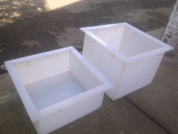 Contenedores en polipropileno gris o natural, fabricados a medida para contener soluciones químicas.